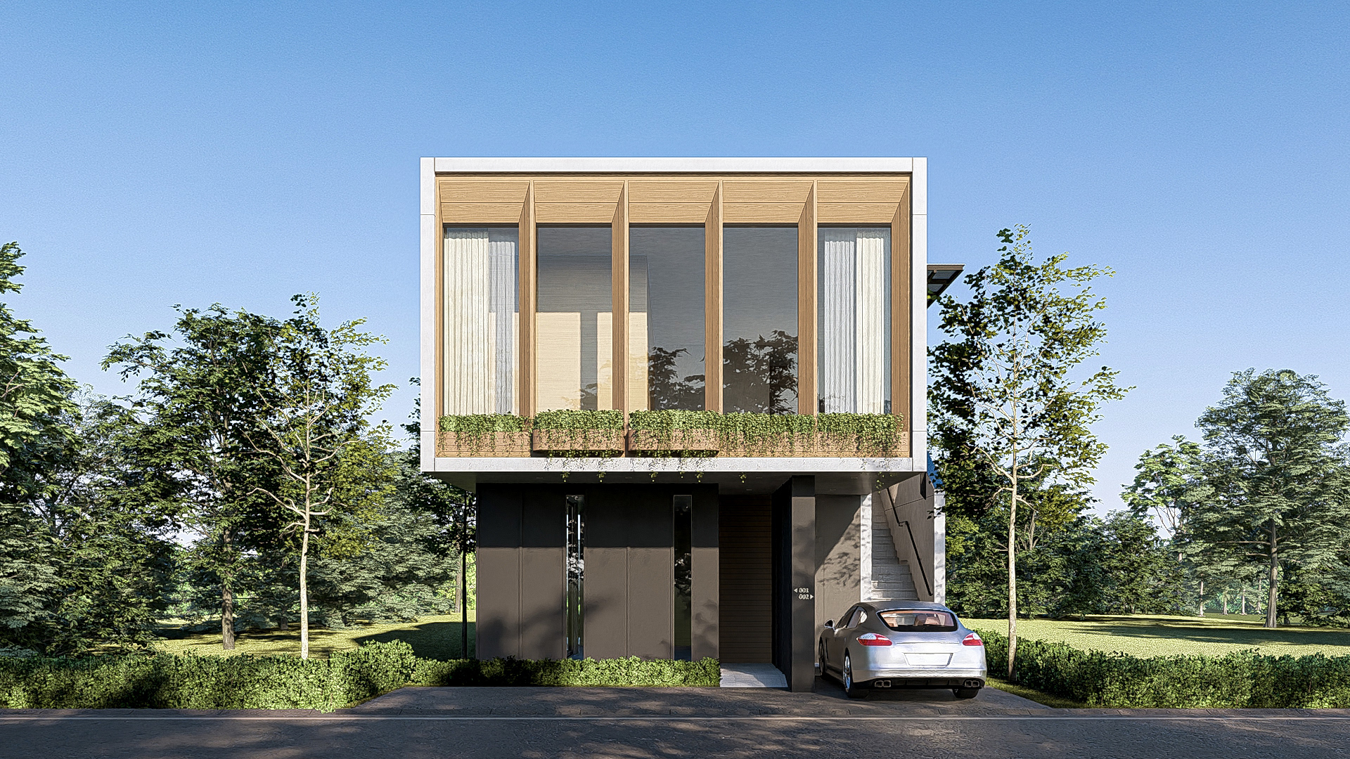 The conceptual study for housing Facade Concrete, Wood, Steel Conceptual | 2024